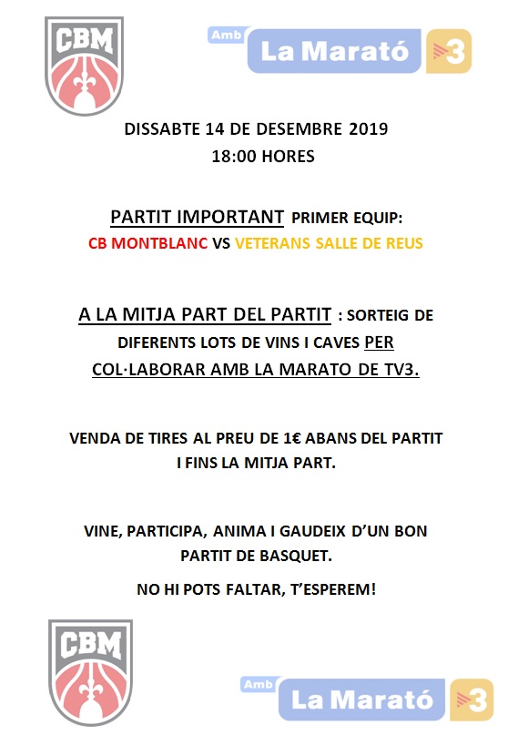 Com cada any, el Club Bàsquet Montblanc es suma a la jornada solidària organitzada per La Marató de TV3, aquest any dedicada a les malalties minoritàries.